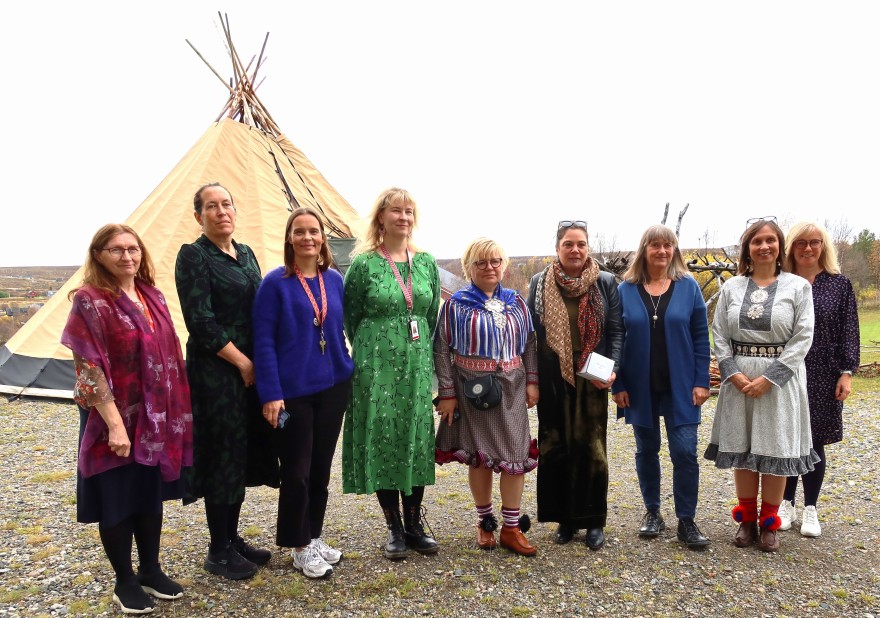 På bildet er Inga Margrethe Eira Bjørn (Sametinget) og Lisbeth Vesterheim Skoglund (Sametinget) og Annica som Linde Øygard (Folkehelseforeningen),Ragnhild Storstein Spilker (NSF) og rektor Liv Inger Somby, i tillegg forannevne folk.
