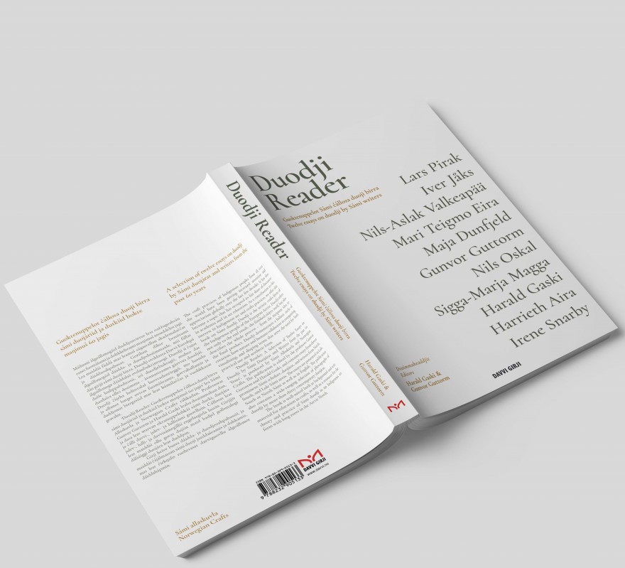 Lea sámi lágadus Davvi Girji mii almmuha girjji Duodji Reader: Guoktenuppelot čállosa duoji birra sámi duojáriid ja dutkiid bokte maŋimuš 60 jagis / A selection of twelve essays on duodji by Sámi duojárat and writers from the past 60 years.